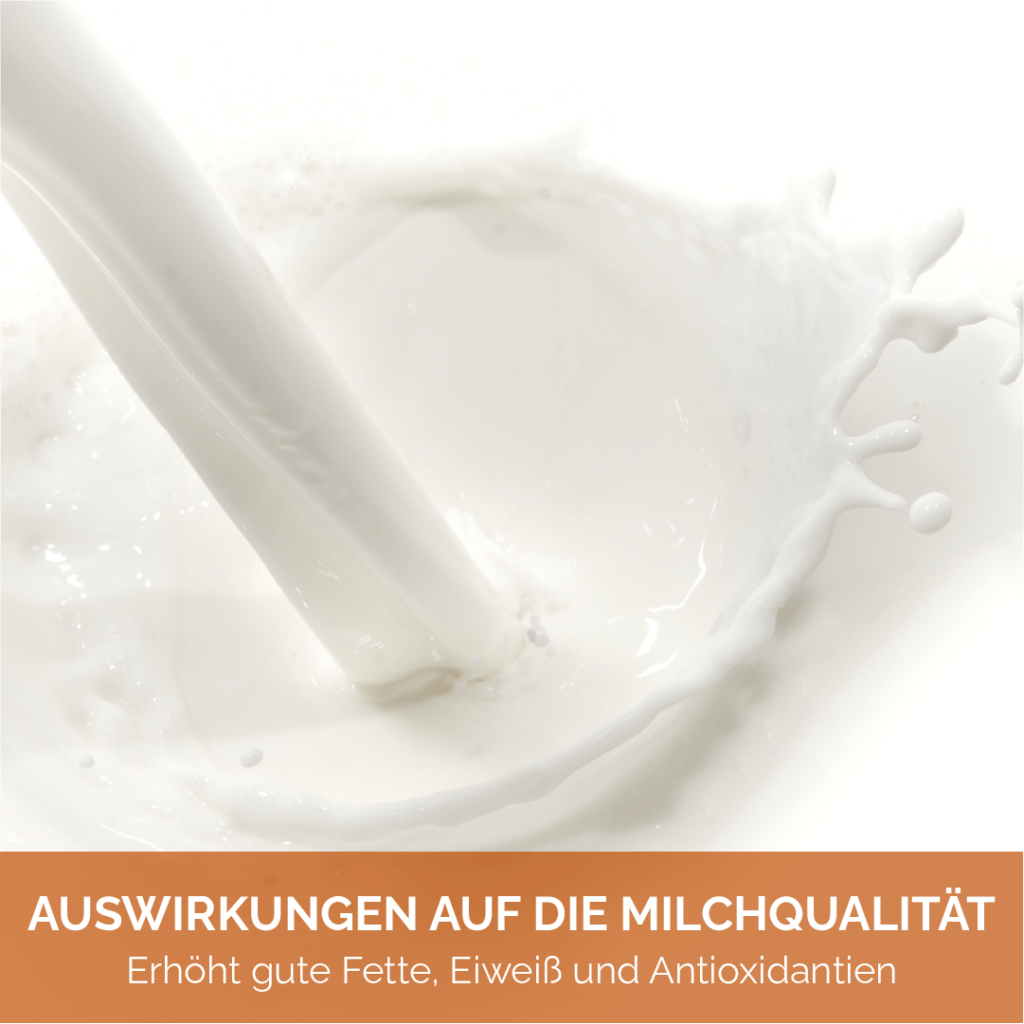 • Besseres Mineralstoffprofil: Dank des hohen Gehalts an Kalzium, Magnesium und Phosphor in Luzerne ist die Milch reicher an diesen wichtigen Mineralien, was den Nährwert verbessert.