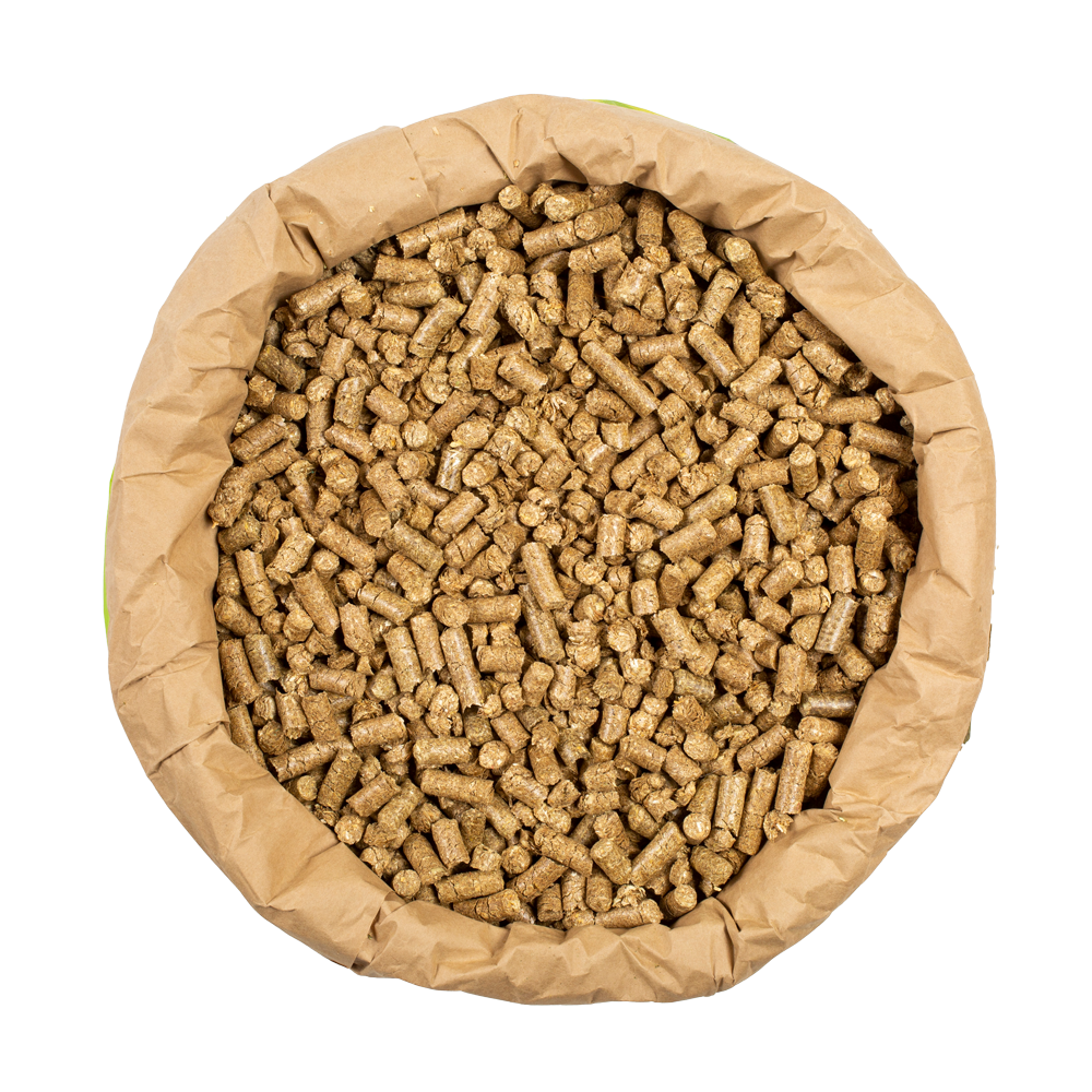 Pelletiertes Stroh wird als natürliche Einstreu für alle Tiere im Stall verwendet.