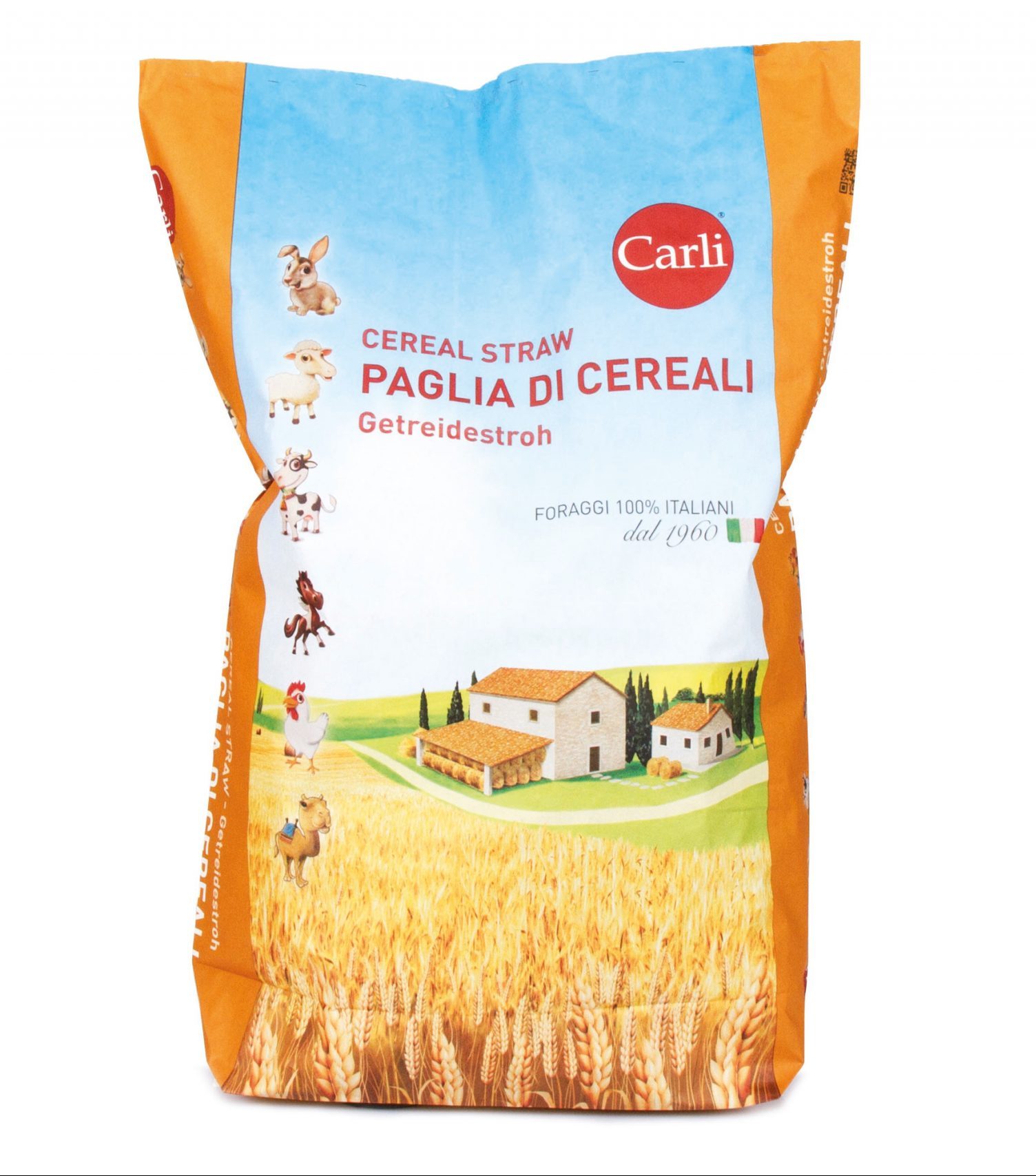 Das Stroh von Gruppo Carli stammt aus Getreide, das von den Unternehmen der Gruppe auf italienischen Feldern angebaut wird. Hart- und Weichweizen, Dinkel und Gerste werden ohne den Einsatz von chemischen Düngemitteln, Pestizidbehandlungen und Bewässerung angebaut, und die Verarbeitung des Strohs erfolgt ausschließlich mechanisch.