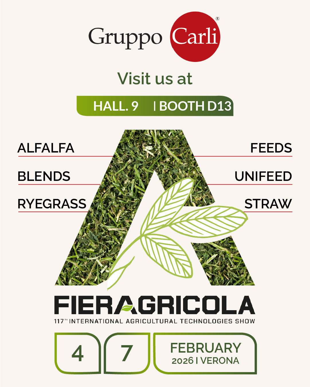 Gruppo Carli will be present at Fieragricola Verona, ready to meet farmers, nutritionists and partners with whom it shares a link with the animal husbandry and a commitment to quality animal feed products.
