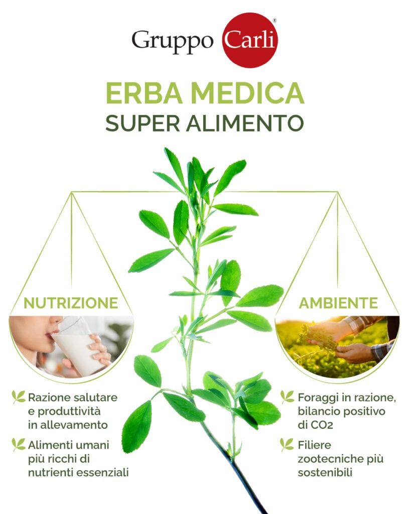 È assodato che oggi, la maggior parte dei consumatori attribuisce al cibo un ruolo centrale nella propria vita e che la preferenza d’acquisto passa da scelte consapevoli, optando per alimenti provenienti da produttori e filiere sostenibili. In questo senso, l’erba medica può davvero fare la differenza: un super-alimento che, seppur introvabile sugli scaffali del supermercato, trasforma la dieta degli animali in alimenti ad alto valore nutrizionale.