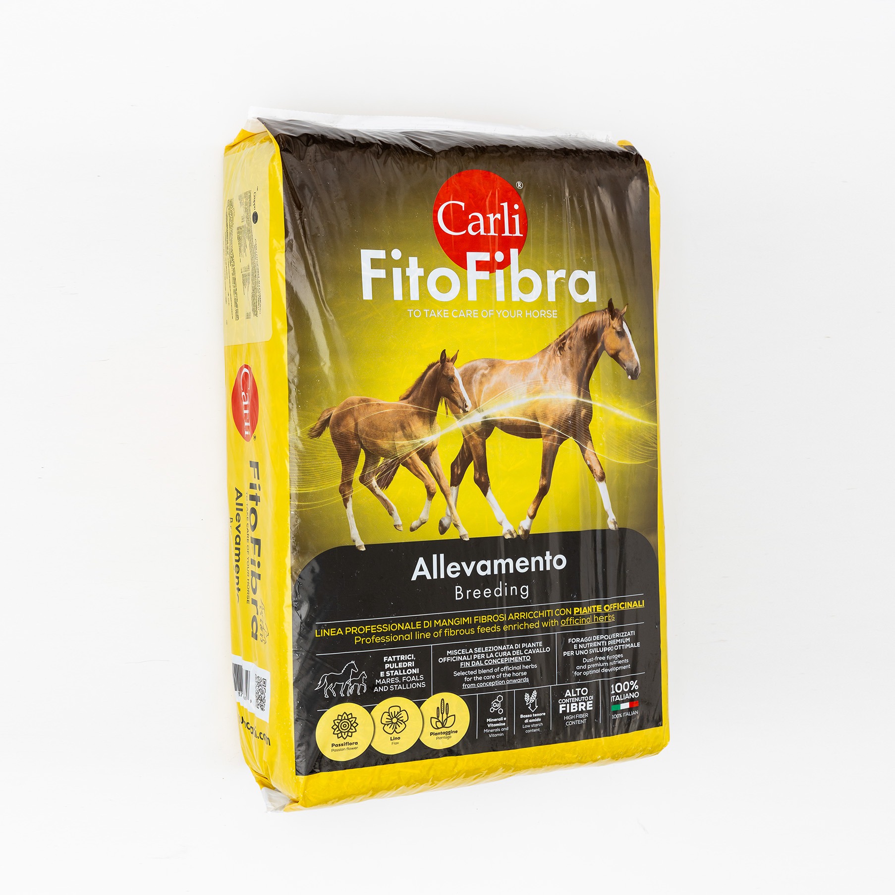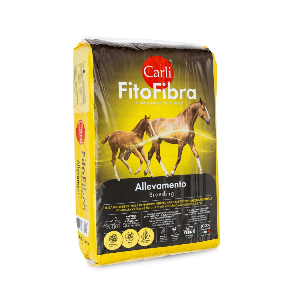 FitoFibra Élevage est formulé à partir d’une base de fourrages sélectionnés, composée de foin de première coupe et de luzerne, essentiels pour l’apport en protéines, fibres hautement digestibles et acides aminés essentiels. Le produit contient également du Radicchio, du Persil et de l’Ortie, idéals pour protéger et renforcer le système circulatoire et le système immunitaire, plus vulnérables aux agents pathogènes durant ces phases physiologiques. Ces plantes médicinales, associées à l’ajout de levure, favorisent la fermentation des fibres et l’absorption des nutriments, tout en rendant l’aliment appétent grâce à leur arôme et leur goût appréciés par les chevaux. FitoFibra Élevage est un aliment pauvre en sucres et en amidon, apportant de l’énergie grâce aux fibres digestibles présentes dans les fourrages. Cette caractéristique en fait un aliment idéal pour soutenir l’intestin de la jument en fin de gestation.