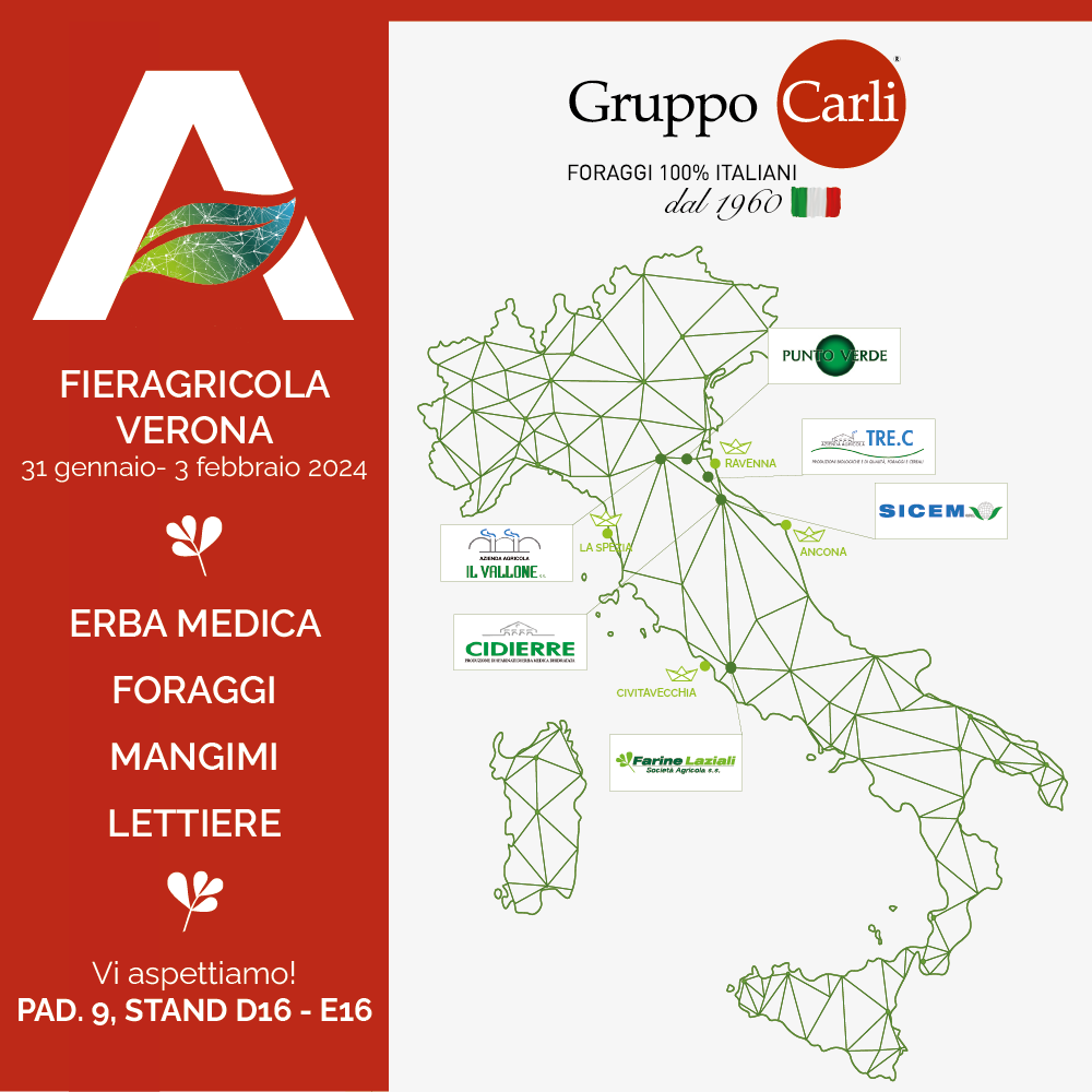 L’edizione con il numero 116 di Fieragricola è in partenza il 31 gennaio a Verona Fiere e Gruppo Carli è lieto di comunicare la sua partecipazione all’evento, con un nuovissimo stand D16 – E16 nel Padiglione 9.
