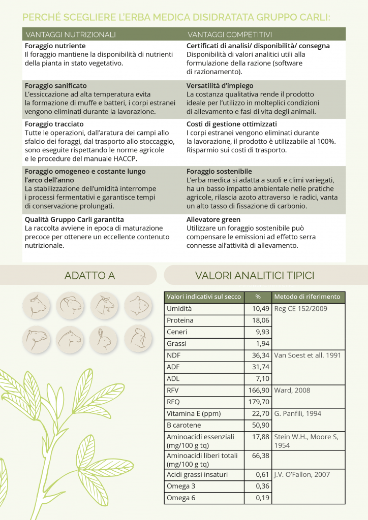 L’erba medica è nota come specie chiave per i sistemi agro-zootecnici per la sua sua capacità di fissare il carbonio atmosferico, per il suo adattamento a condizioni colturali avverse, per la sua produzione di foraggio di elevato contenuto proteico e ottima qualità nutrizionale e per il contributo positivo alla fertilità dei terreni e al bilancio dell’azoto