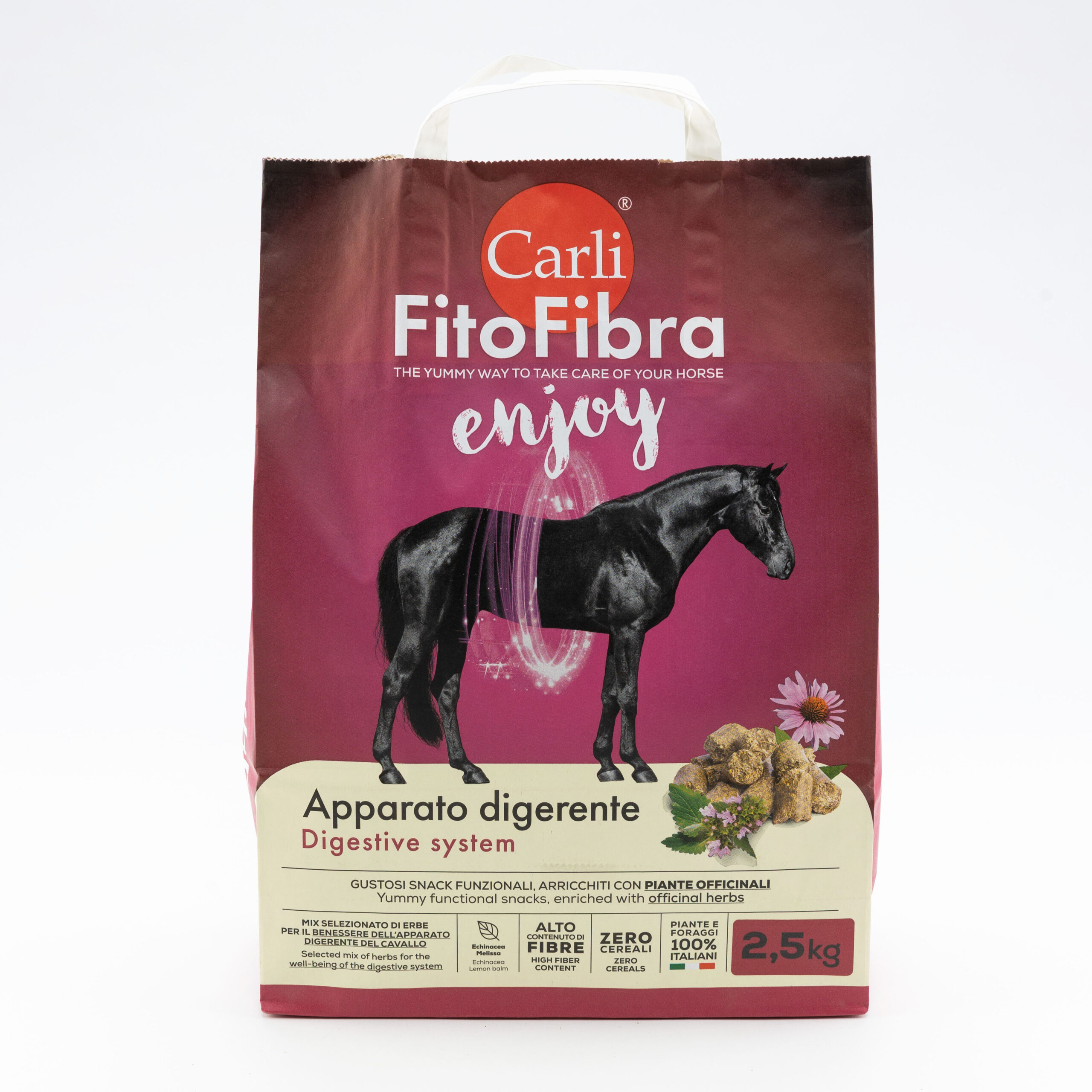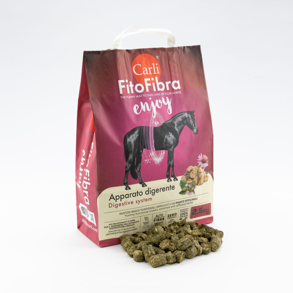 Gli snacks Carli FitoFibra, a base di foraggi ed erbe officinali, sono un’ottima integrazione alla dieta del cavallo e risultano ideali come premio. Le erbe contengono diversi composti naturali benefici come i flavonoidi e i carotenoidi, che hanno effetti antiossidanti.