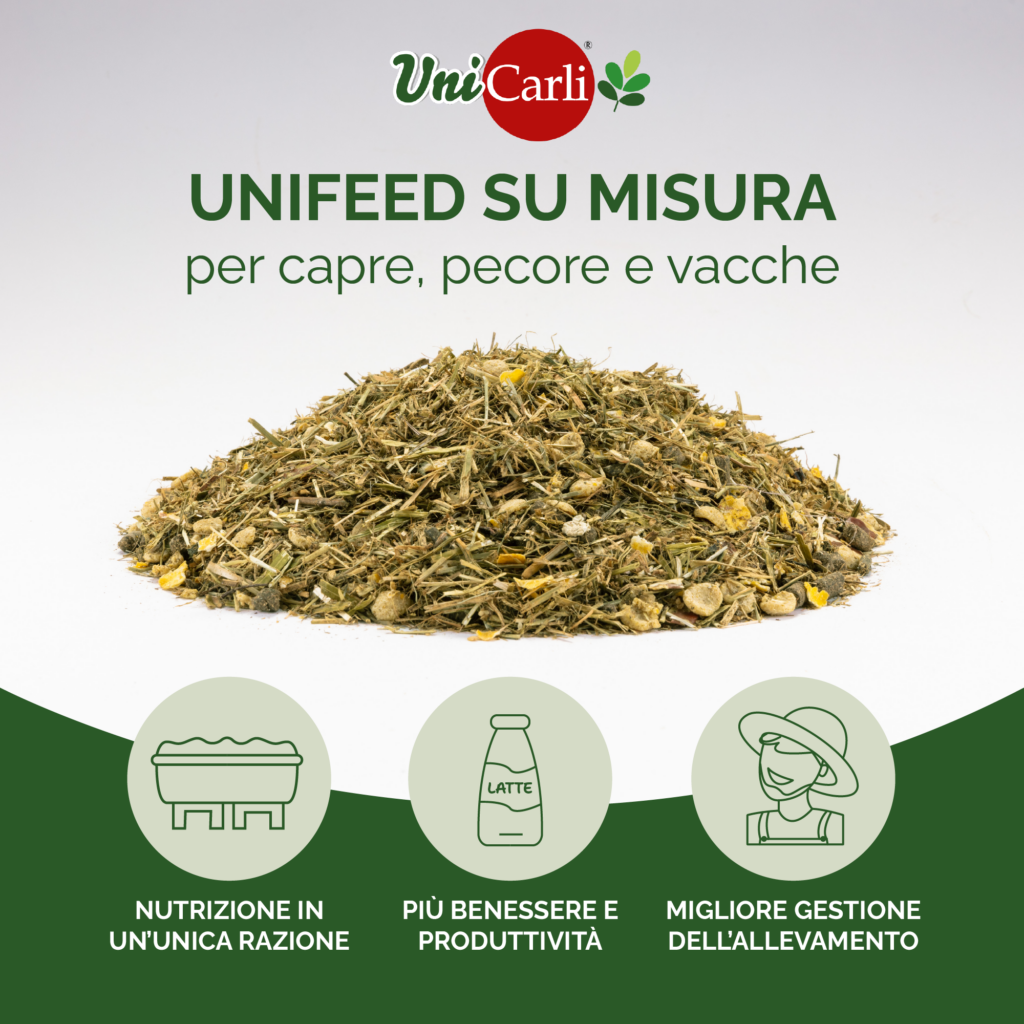 Gli unifeed completano l’offerta Gruppo Carli per l’alimentazione zootecnica, garantendo prodotti provenienti da una filiera controllata e certificata, in grado di rispondere ad esigenze alimentari di varie tipologie di allevamento. La produzione di lotti con formule personalizzate, su richiesta, è uno strumento flessibile, a disposizione del tecnico di stalla.